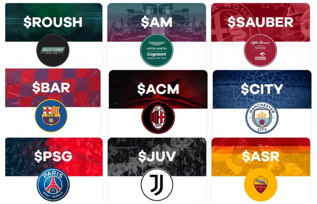 Entre as equipes de E-sports com tokens de fãs disponíveis estão OG, Team Heretics, Natus Vincere e Team Alliance. A UFC, maior liga de artes mistas marciais, anunciou seu fan token para junho e algumas equipes de A Formula 1 também têm lançamento previsto para este ano.